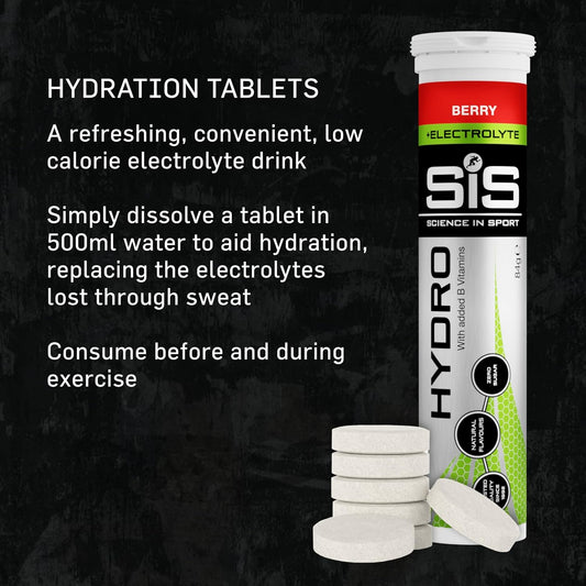 Science In Sport Hydro Hydration Tablets, Gluten-Free, Zero Sugar, Berry Flavour Plus Electrolytes, 20 Effervescent Tablets